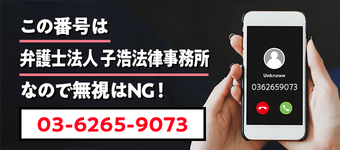 03-6265-9073から電話が掛かってきた場合は、子浩法律事務所から「督促の連絡」ですので無視や放置はしないようにして下さい。