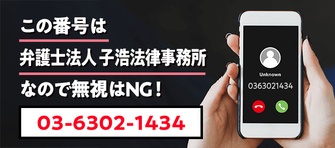 03-6302-1434から電話が掛かってきた場合は、子浩法律事務所から「督促の連絡」ですので無視や放置はしないようにして下さい。
