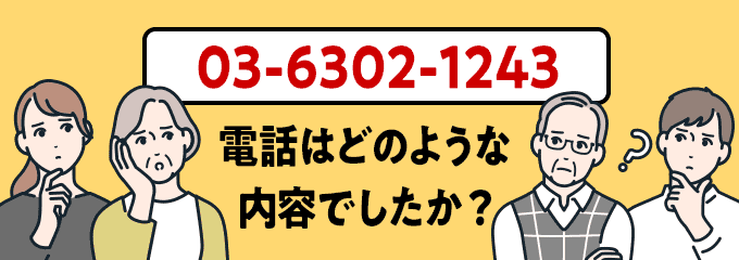 「03-6302-1243」からの電話に出てみましたか?